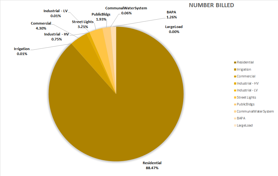 Life improves with electricity. It gives people the desire for convenience and innovation. Hence, reaching to a total of 190,529 billed member-consumers as of December 2023 largely composed of residential consumers with 168,558 billed member-consumers or equivalent to 88.47 percent while industrial consumers is comprise only of 1% of the overall number billed consumers.