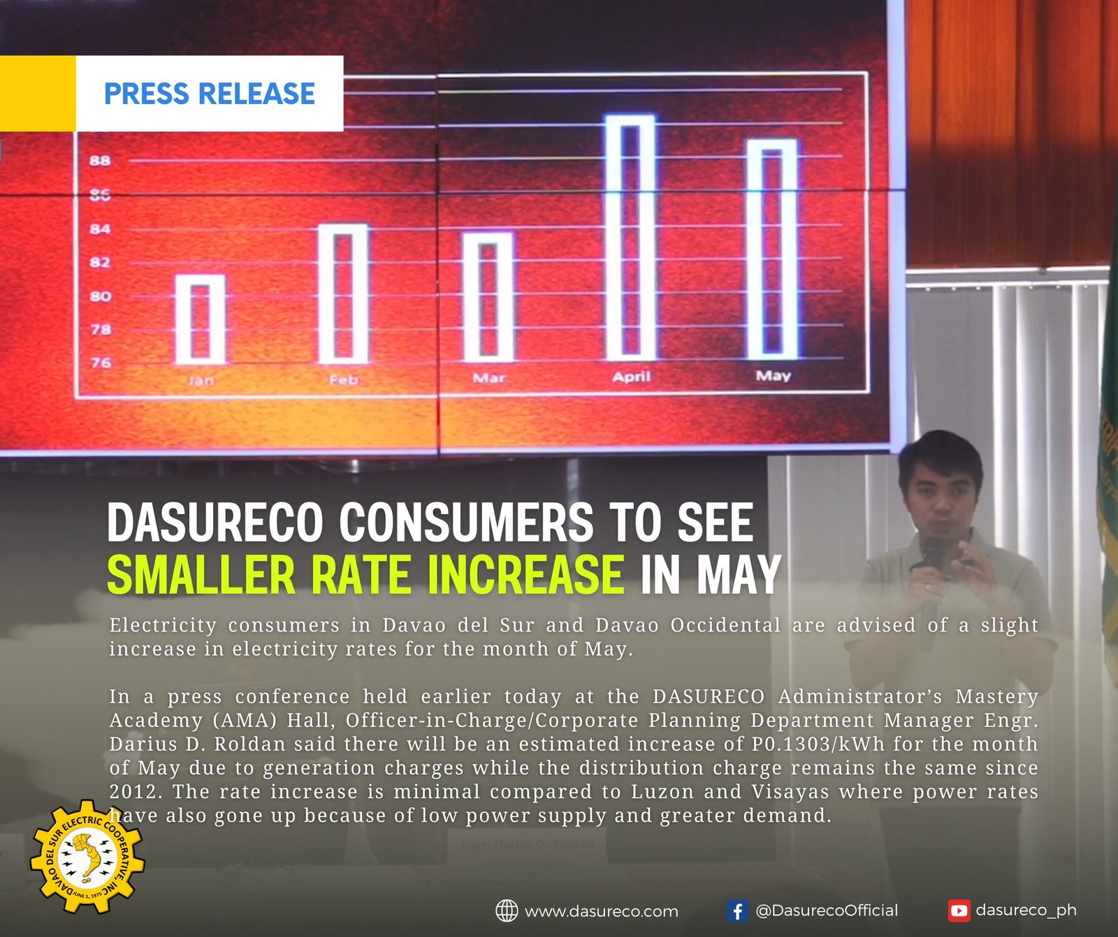 PRESS RELEASE 17 May 2024 Electricity consumers in Davao del Sur and Davao Occidental are advised of a slight increase in electricity rates for
